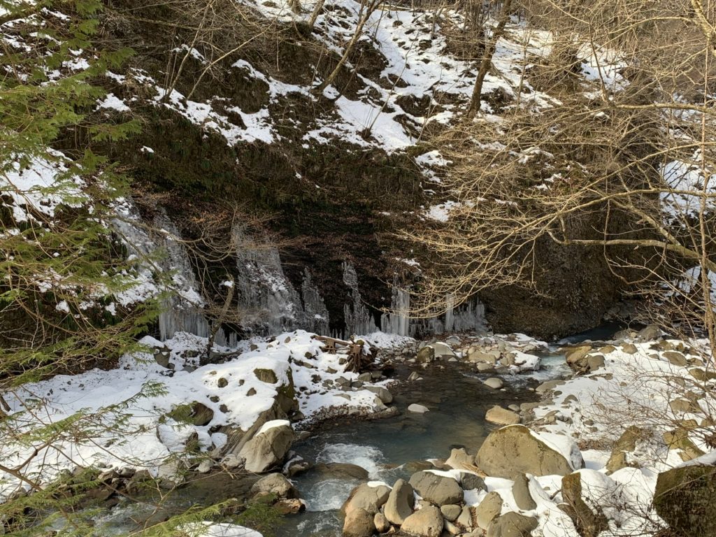 春や夏、秋のスッカン沢も素敵ですが、凛とした空気を感じれる渓谷と氷瀑の美しさが合わさって手つかずの自然が広大に広がる冬のスッカン沢は素敵なところです。
