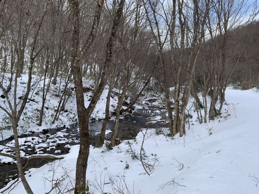 民家を過ぎた先から除雪が終わっていたので冬はこの地点から20分ほど歩いて向かいます。