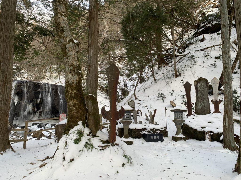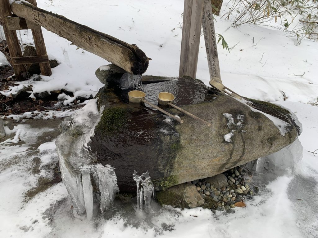 お清めの水も氷柱になっている箇所がありました。
