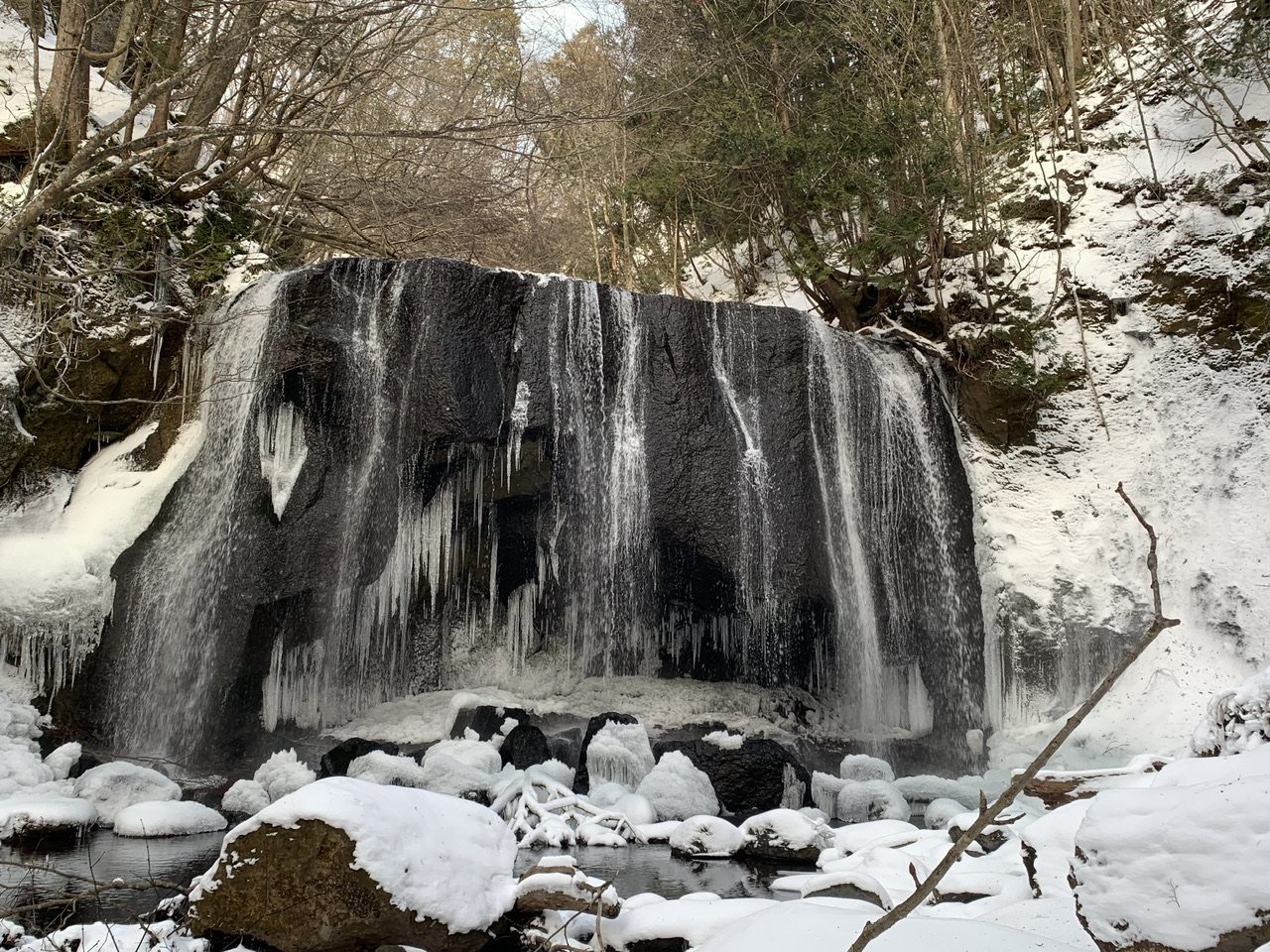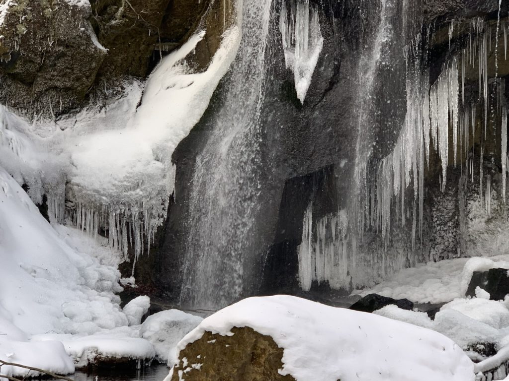 滝のサイドには少し凍っていて氷柱が形成されている箇所もありました。