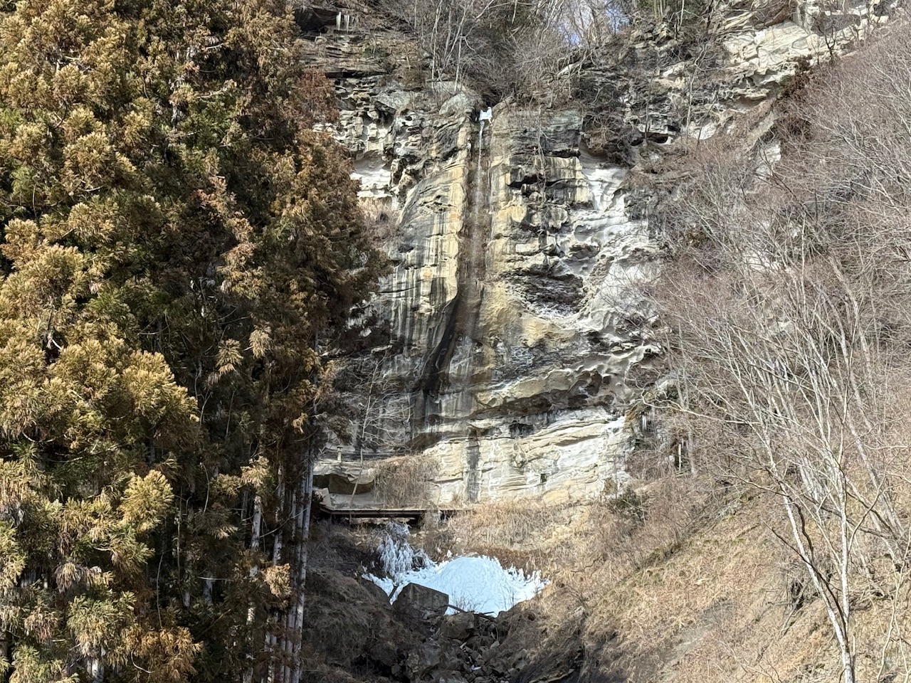 観光客の少なくて有名な滝ではありませんが、岩の絶壁の造形が美しく氷瀑も素敵な滝だと思います。