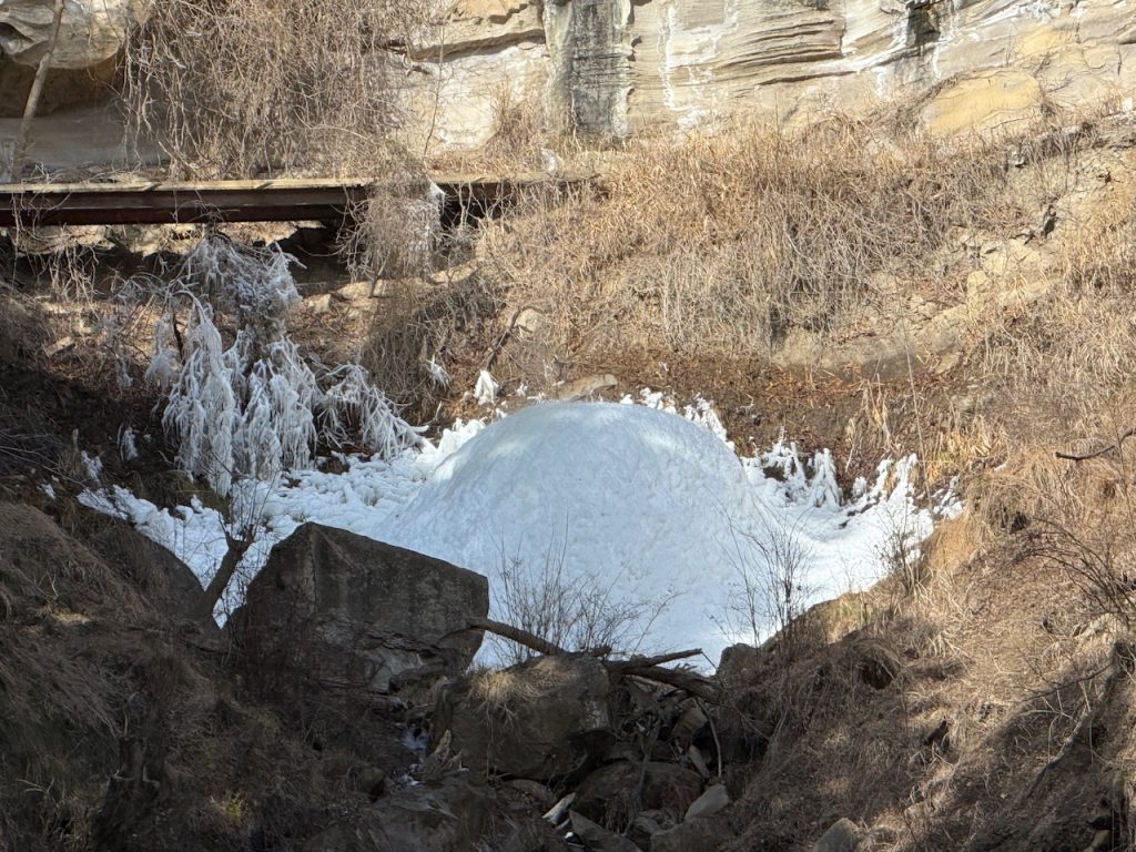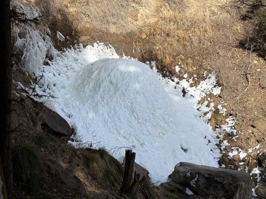 少し小さめですが、滝つぼにこんもりと氷瀑が出来上がっています。