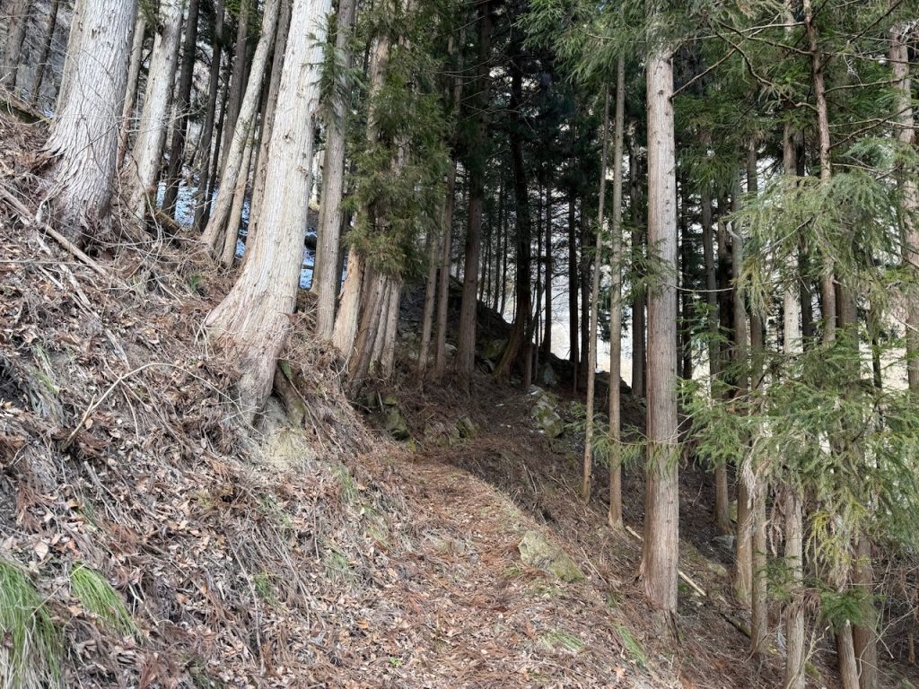 遊歩道の案内表示はありませんので、人が歩いた形跡のある山の斜面を登っていきます。