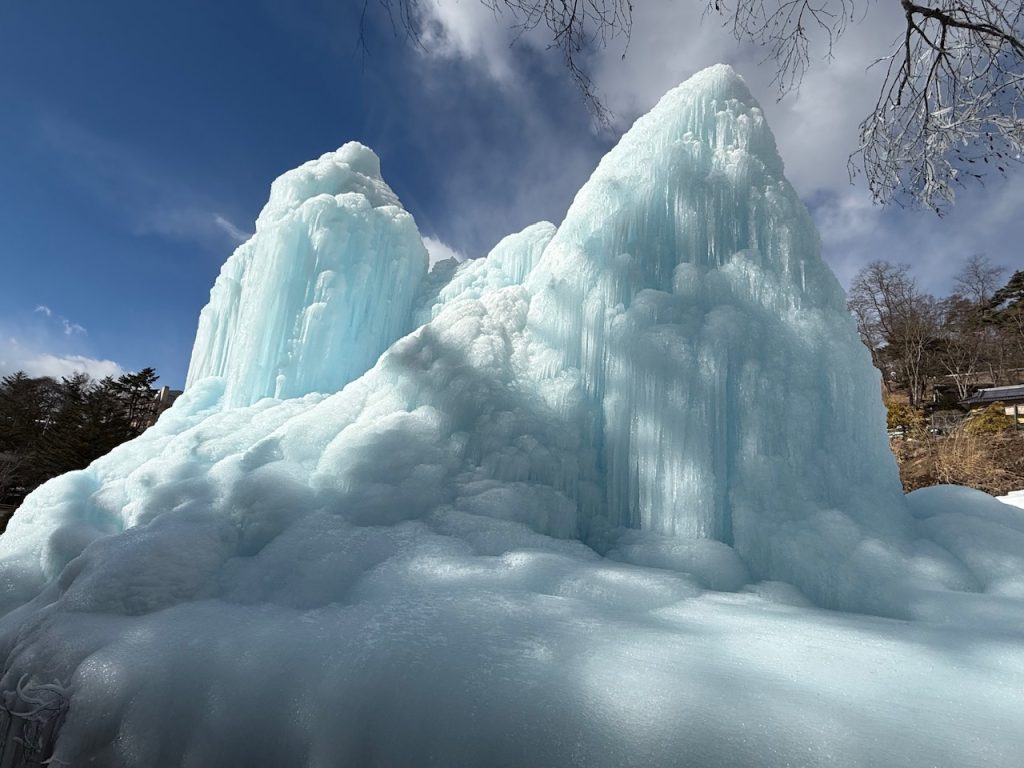 ビーナスラインを車で走らせていると道路脇に巨大な氷柱が見えてきます。