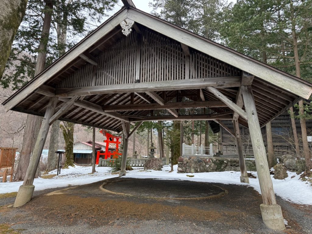 駐車場もあり、境内に入っていくと相撲の土俵がありました。