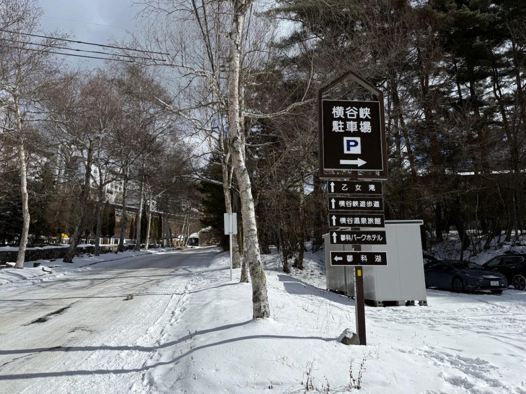 駐車場の手前から雪道になりましたが、除雪されている道でしたのでスタッドレスタイヤであれば大丈夫でした。