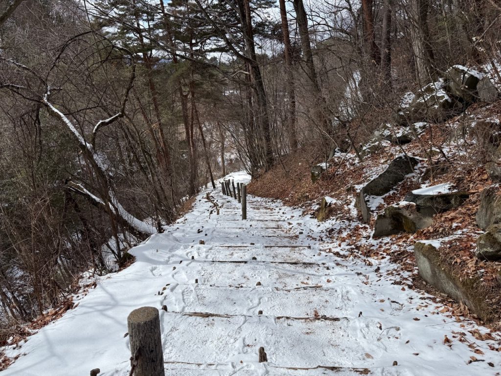 雪道の散策路ですが、積雪は5cmほどなのでトレッキングシューズで散策可能でした。