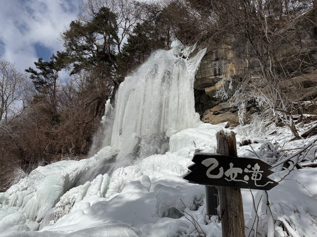 乙女滝は駐車場から歩いて10分ほどで来れる場所なので、歩くのが苦手な方でもこの滝の氷瀑を見るだけでも感動すると思います。