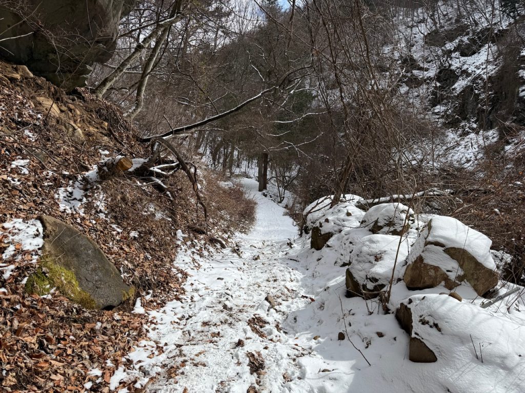 横谷渓谷の遊歩道はこの先もありますが、冬は通行禁止となりここまでとなるようです。