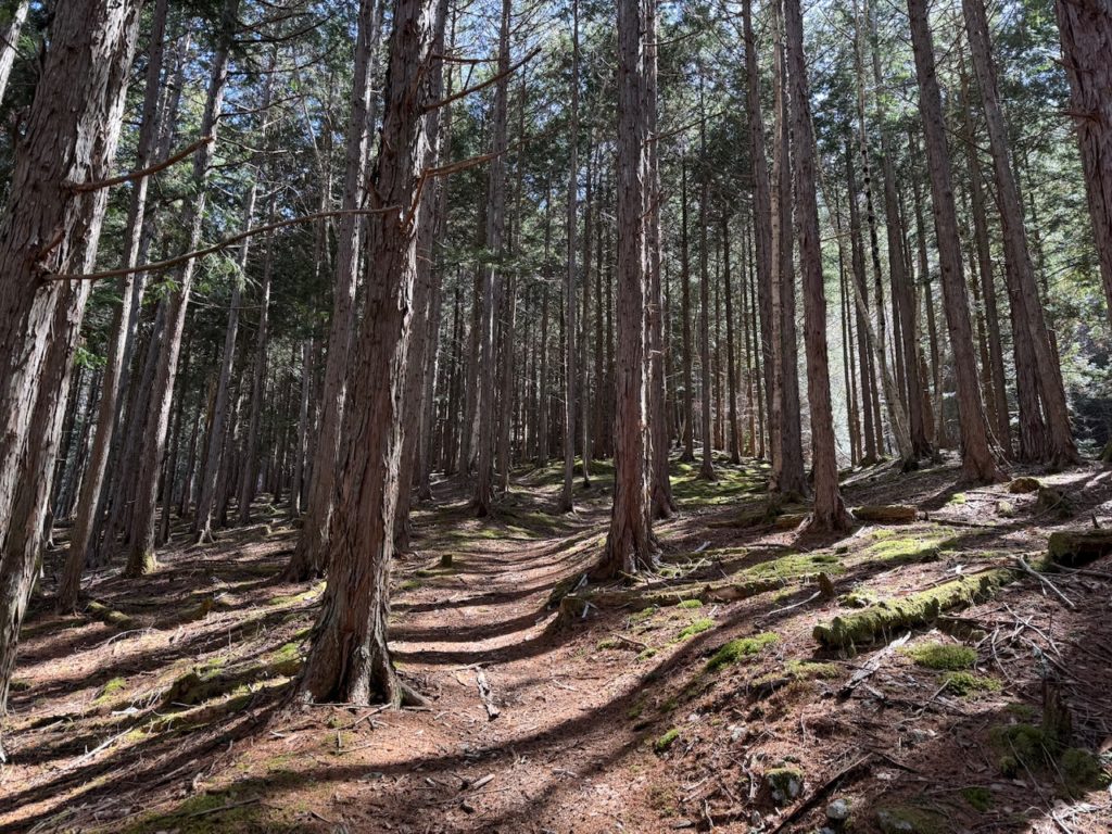 急坂を登った先は広い緩やかな登りの林道となり、静かな自然を感じられる道でした。