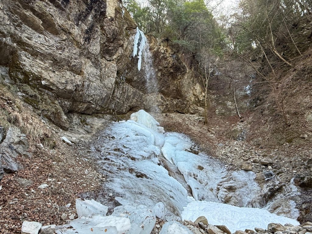 溶けているとは思っていましたが、少しだけ氷瀑になっている箇所が見えます。