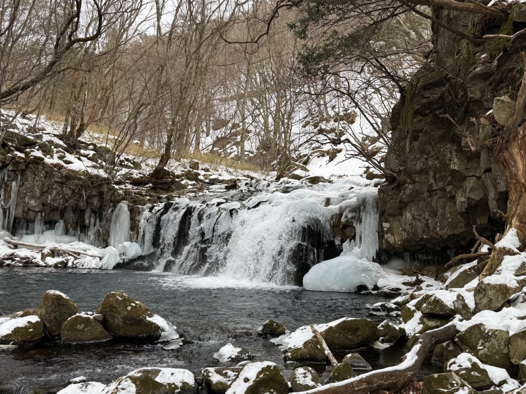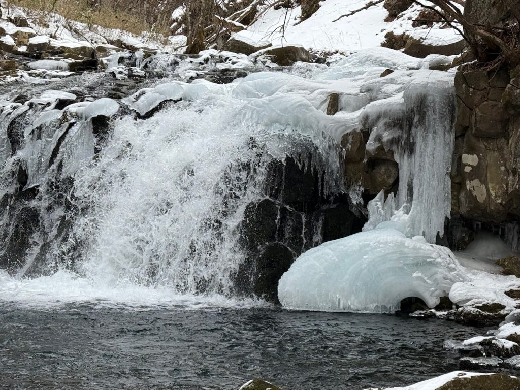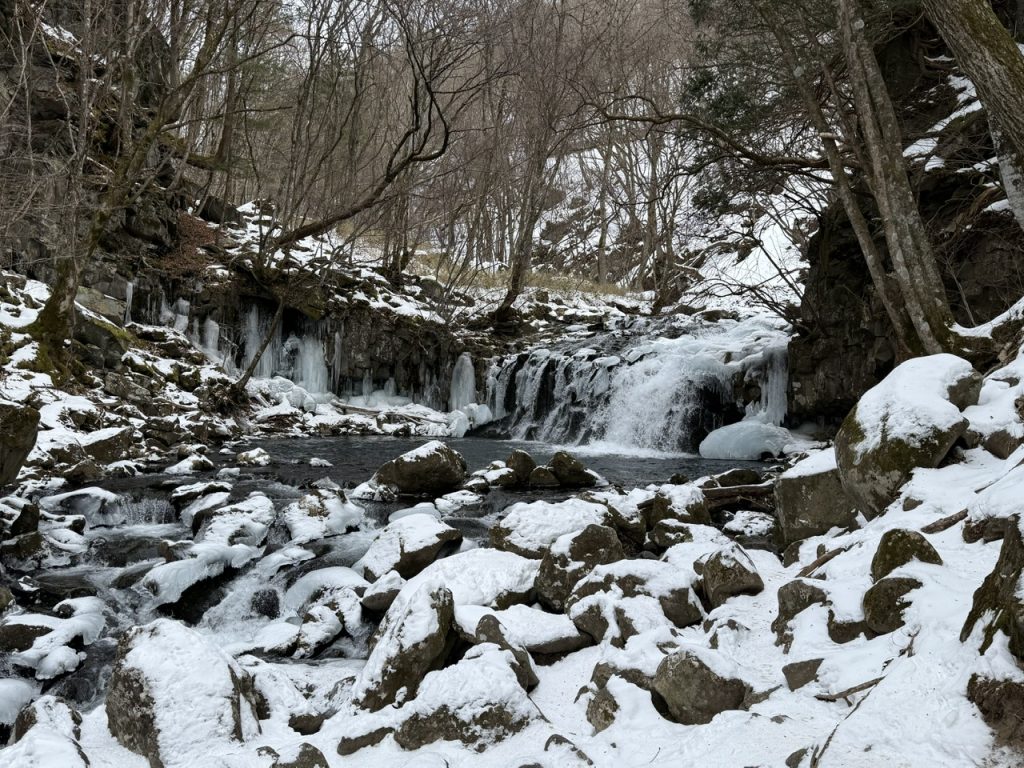 岩壁の一部に氷結している箇所が確認できて素敵な情景を作っていました。