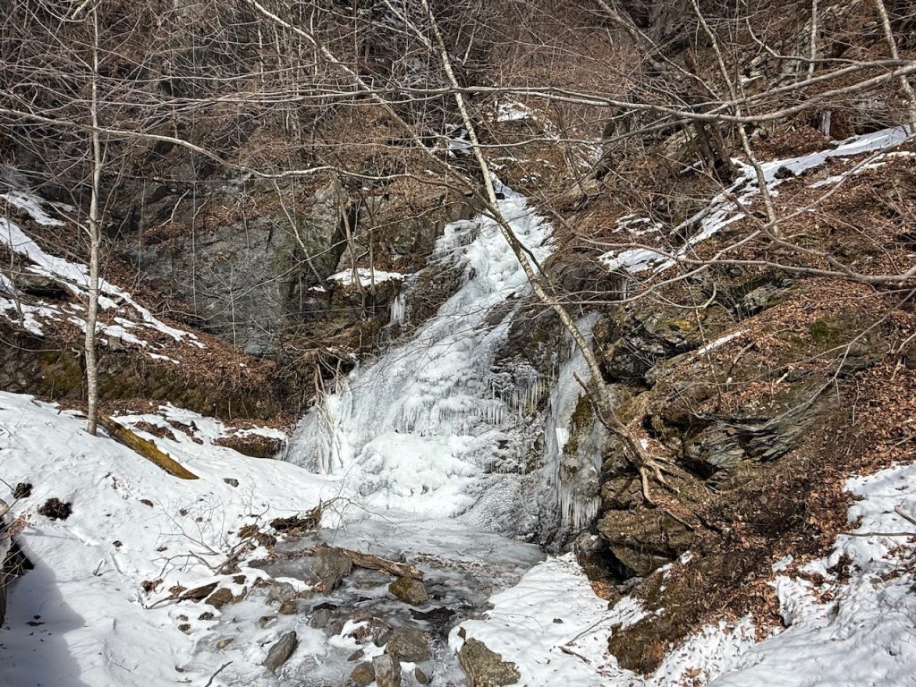 すぐ近くを車やトラックが走行していきますので、滝が流れている音がかき消されて、落ち着きがない場所なのが残念ですが、美しく凍った姿は美しいです。