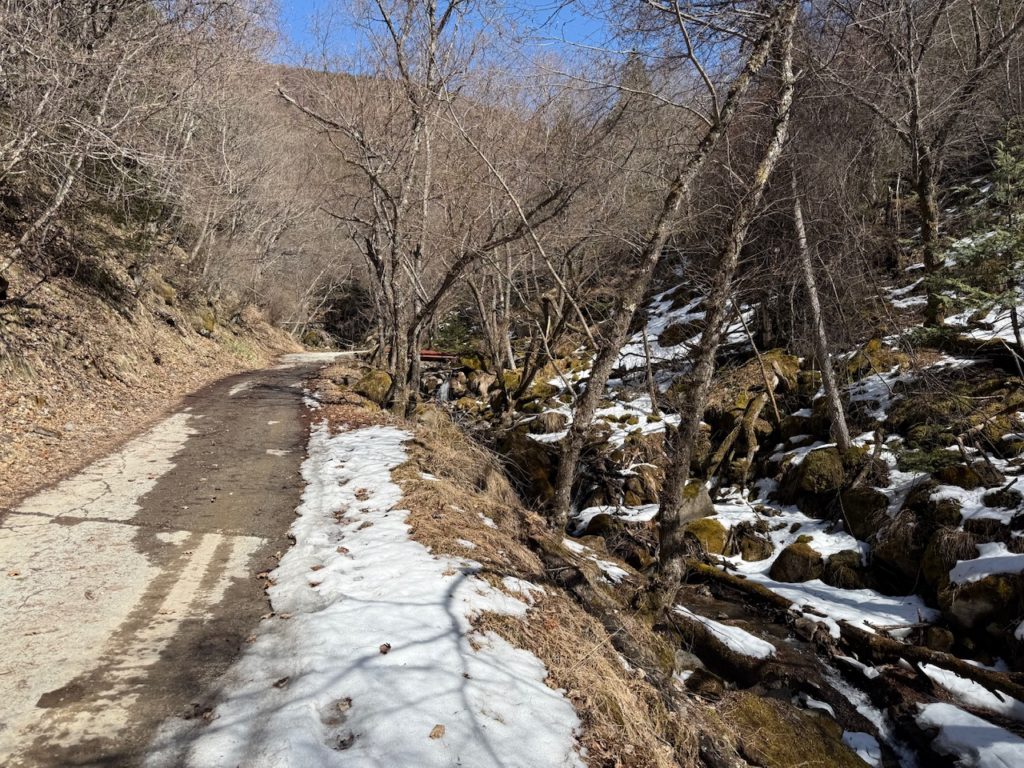 唐沢鉱泉との分岐から夏沢鉱泉方面に舗装されていない山道を走らせます。