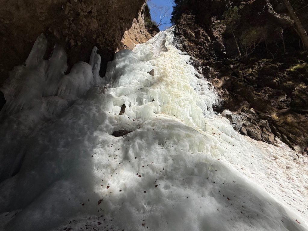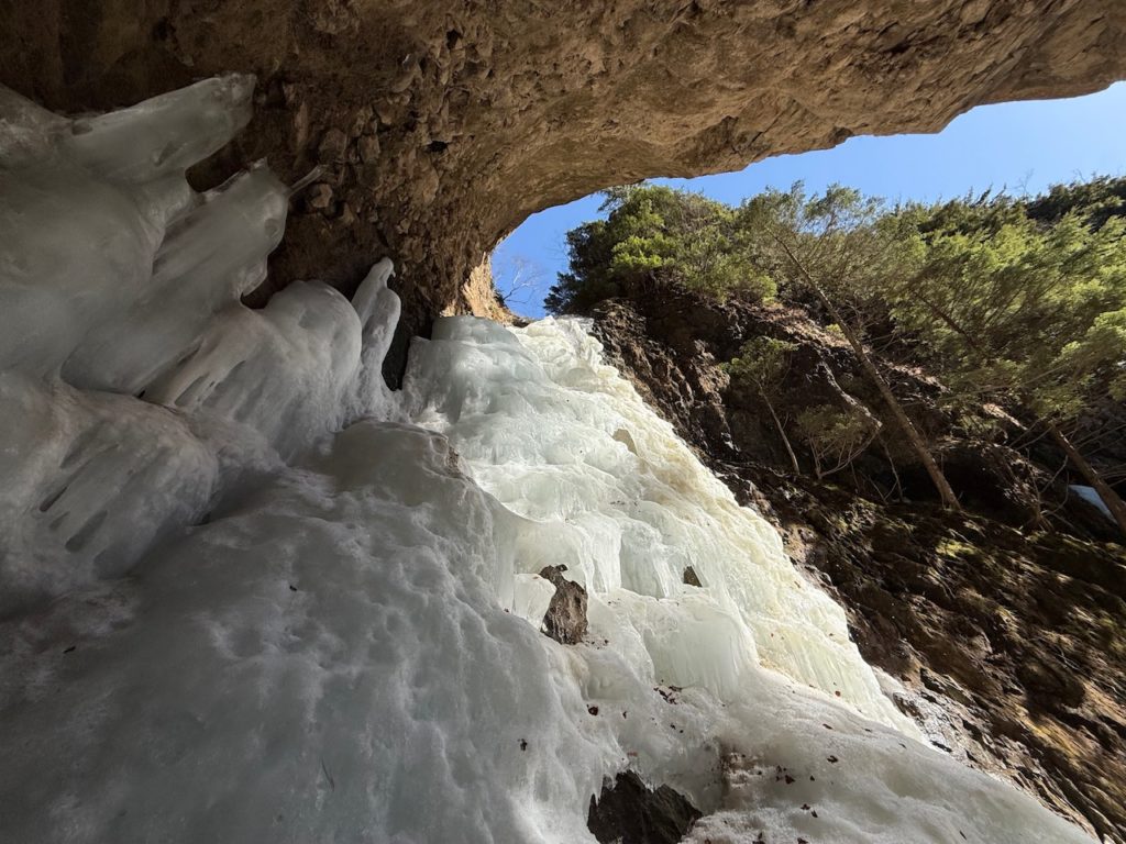 一部氷瀑の内側に滝が流れている所が見えてしまっている箇所もありましたが、自然が作った迫力の氷瀑が見れました。