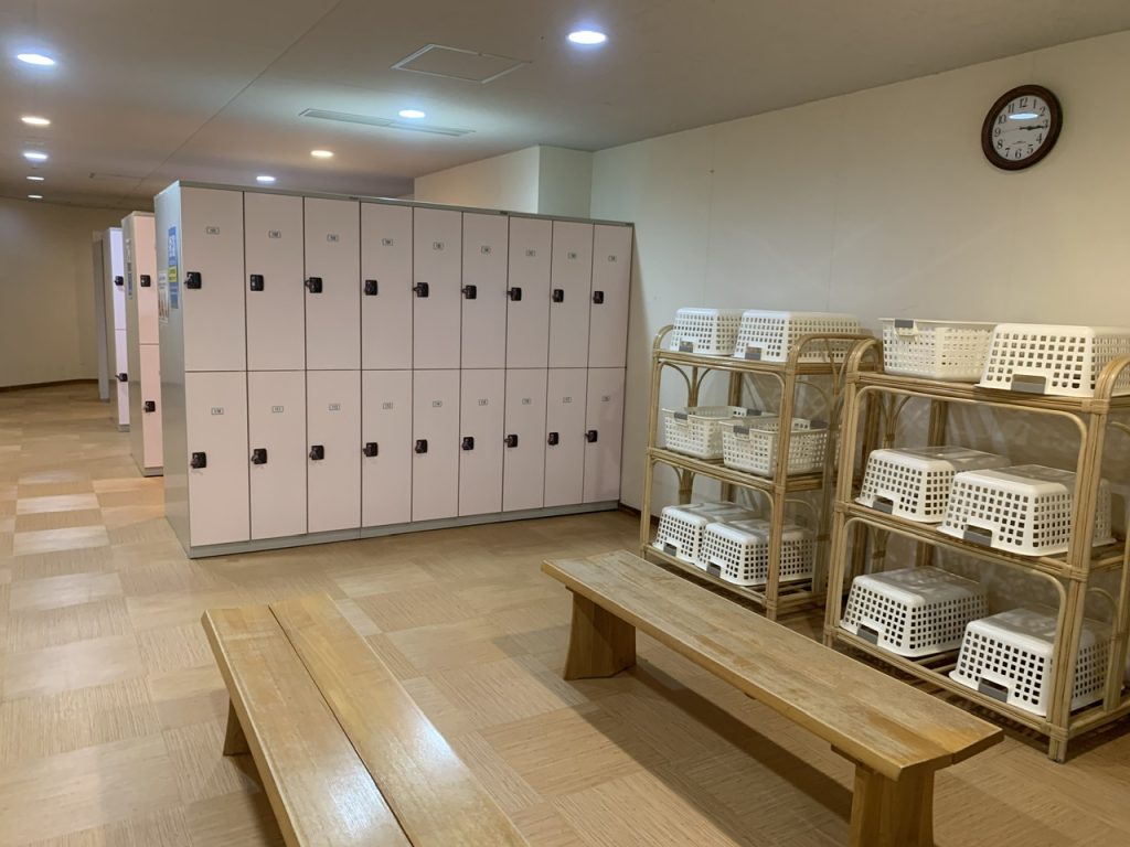 100円返却式ロッカーとカゴを選ぶ事ができます。