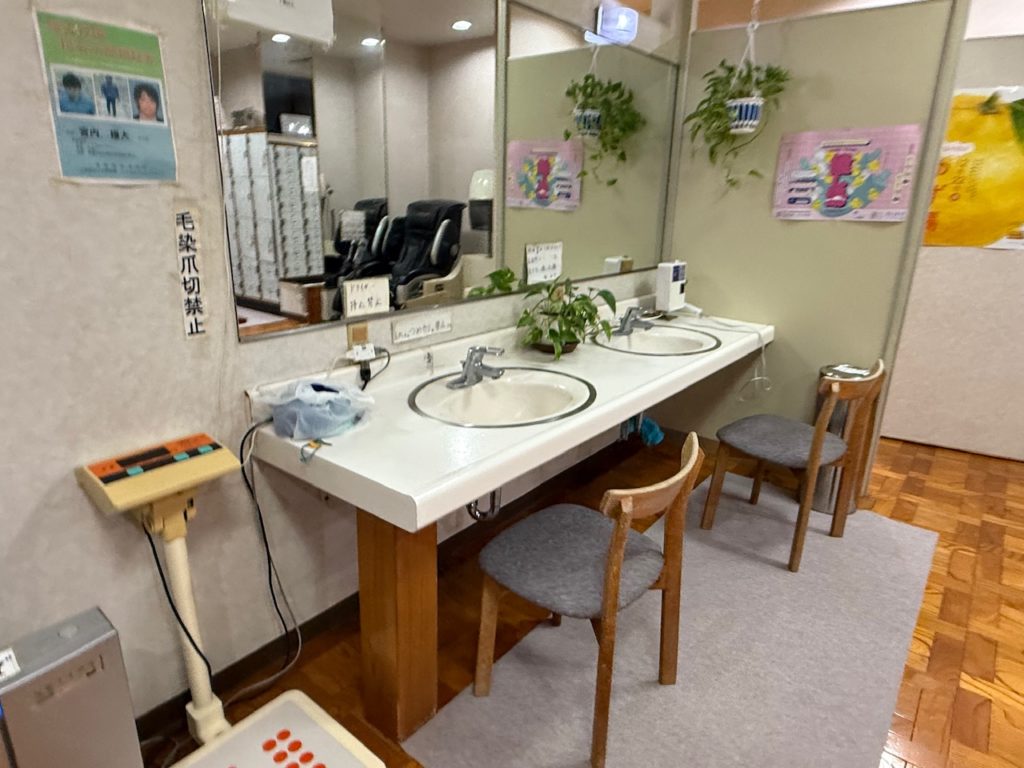 洗面台は2つ、無料のドライヤーはなく、3分20円のドライヤーが1つありました。