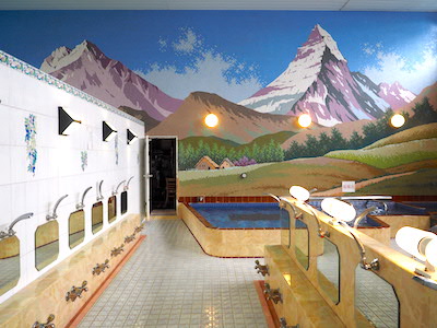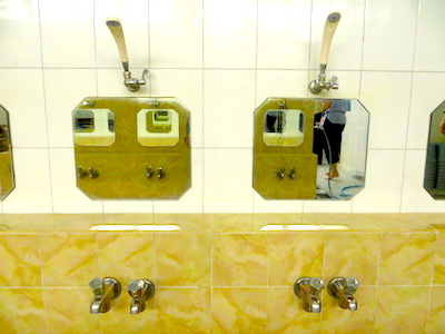 洗い場は23つありました。人と人の間に仕切りがないタイプです。
