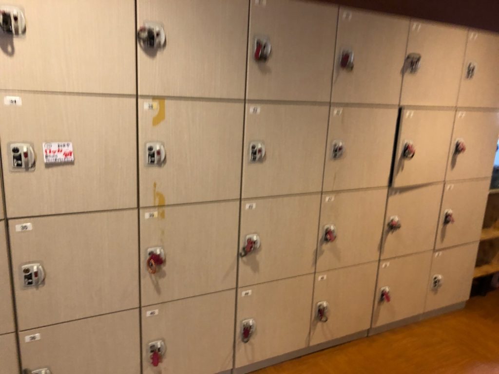 脱衣所には100円返却式ロッカーとカゴがありました。