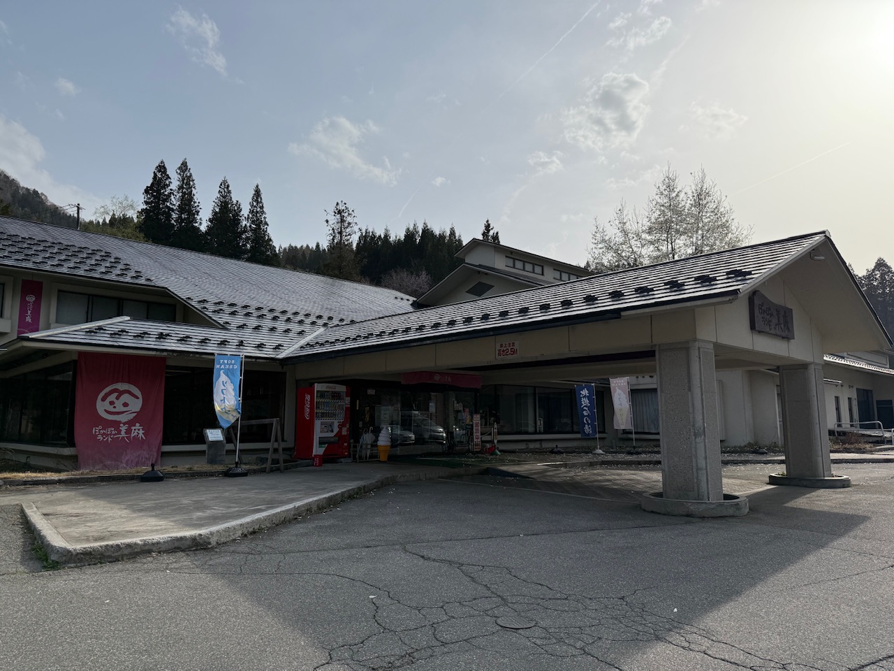 河川がカーブした景色のよい県道31号線沿いに道の駅の看板と共に温泉施設がありました。