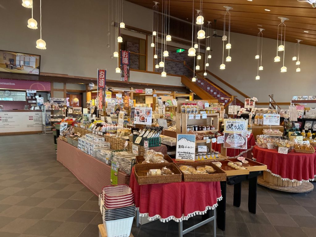 館内に入っていくと高い天井の広々としたロビーにはお土産などが並んでいました。