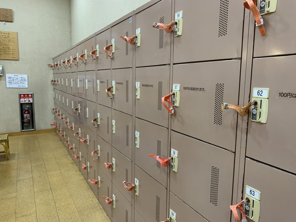 脱衣所のロッカーは100円返却式です。