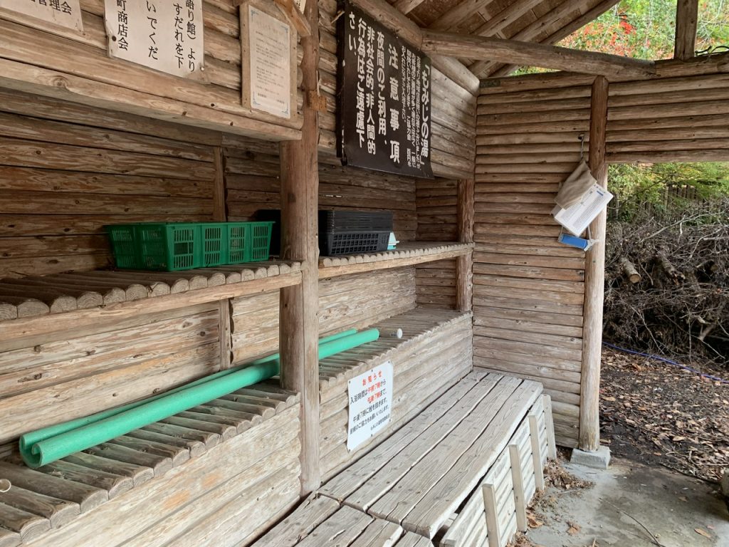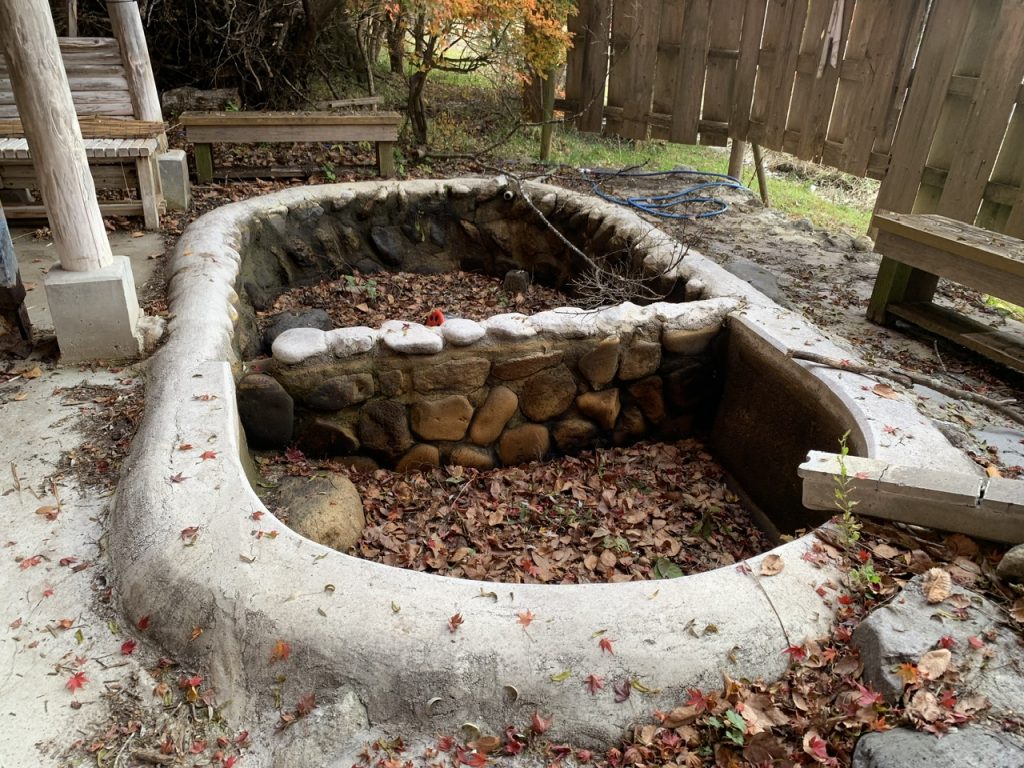 枯葉が落ちて温泉は浴槽に入っておらず放置されていました。