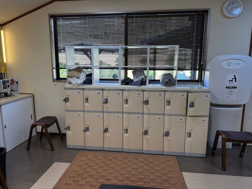 脱衣所は鍵付きロッカーですが、ロッカーの大きさが小さいです。
