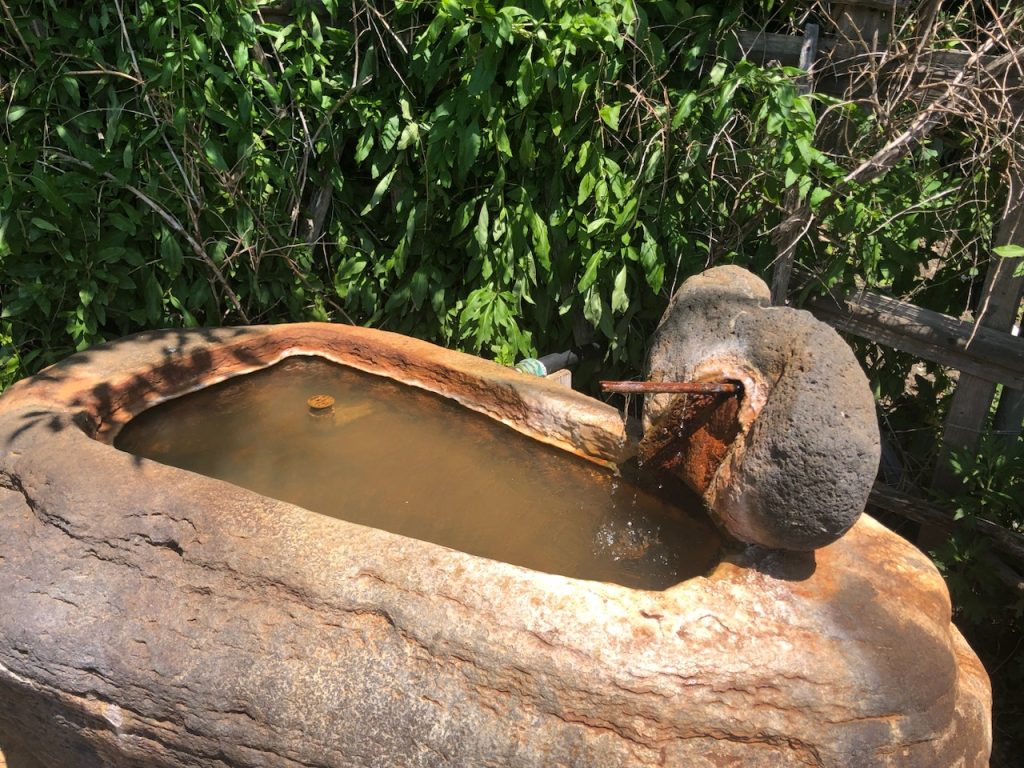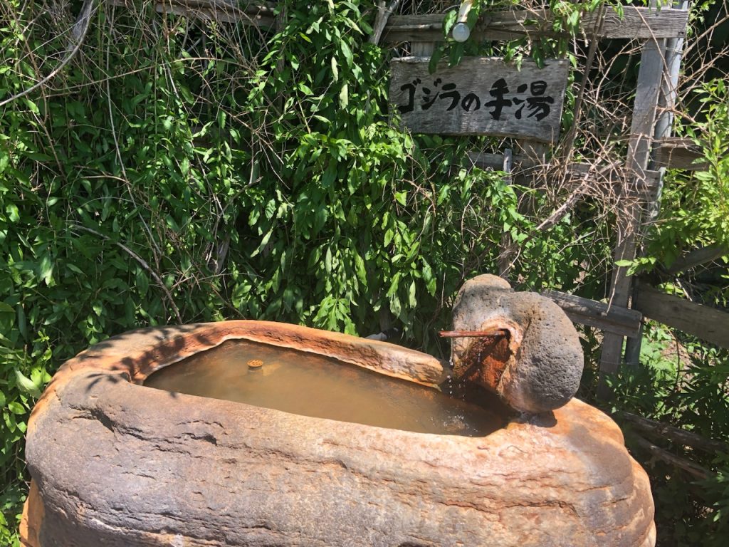 奇石、ゴジラ岩の真下の民宿の前に手湯があります。