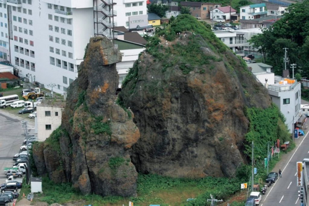 オロンコ岩の隣に鎮座する高さ15mのゴジラ岩はオロンコ岩側から見るとゴジラに見えることから名付けられました。