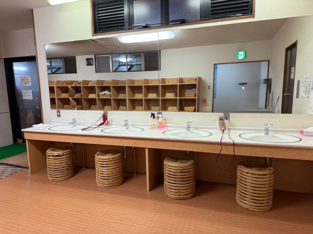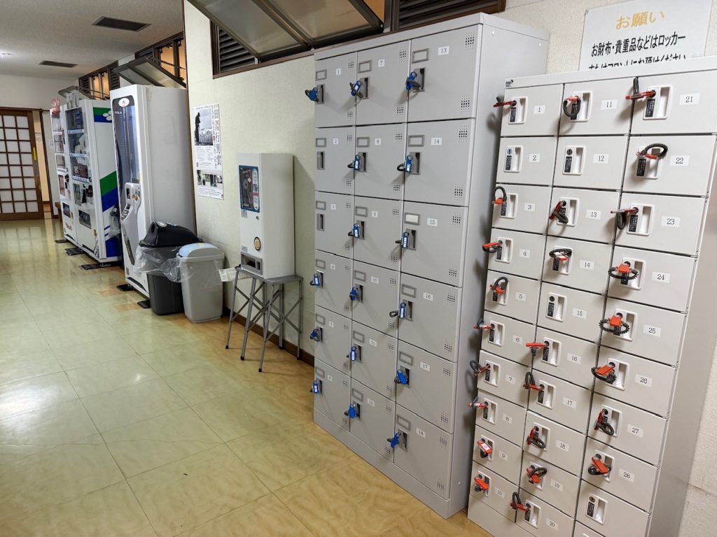 受付から通路を突き当りまで少し歩いて行くと脱衣所の前に鍵付きの貴重品ロッカーがありました。