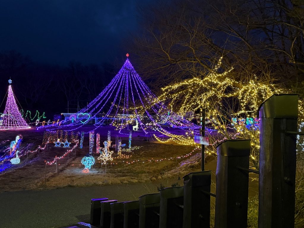 施設の前の広場に冬季はイルミネーションが点灯していて美しい景観が広がっていました。