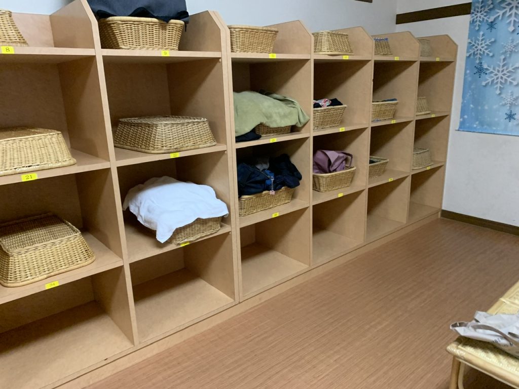 脱衣所内はカゴとなります。