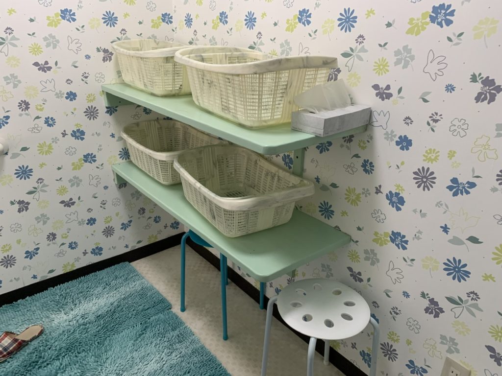 脱衣所にはカゴがあります。