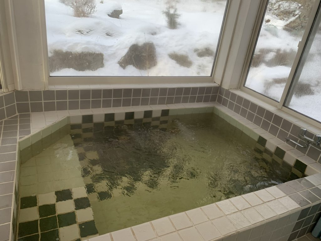 内風呂は山の景色が見れる大きな窓で貸切して入れるので思う存分温泉に浸りながら景色も見ながら温まる事ができます。