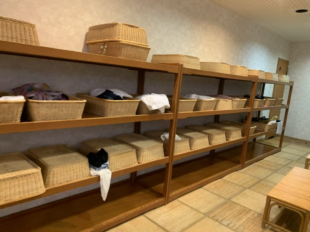 その奥に温泉用の脱衣所があり、カゴがありました。