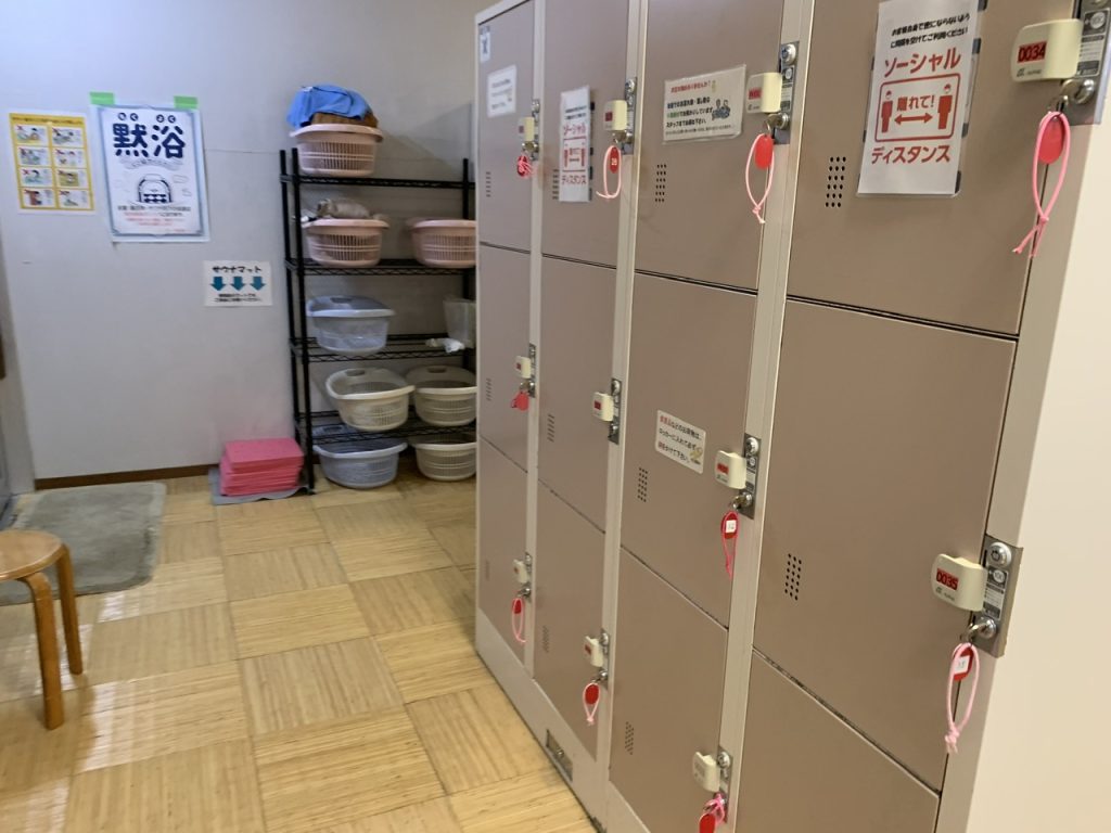 脱衣所は100円返却式のロッカーとカゴが選ぶことができます。