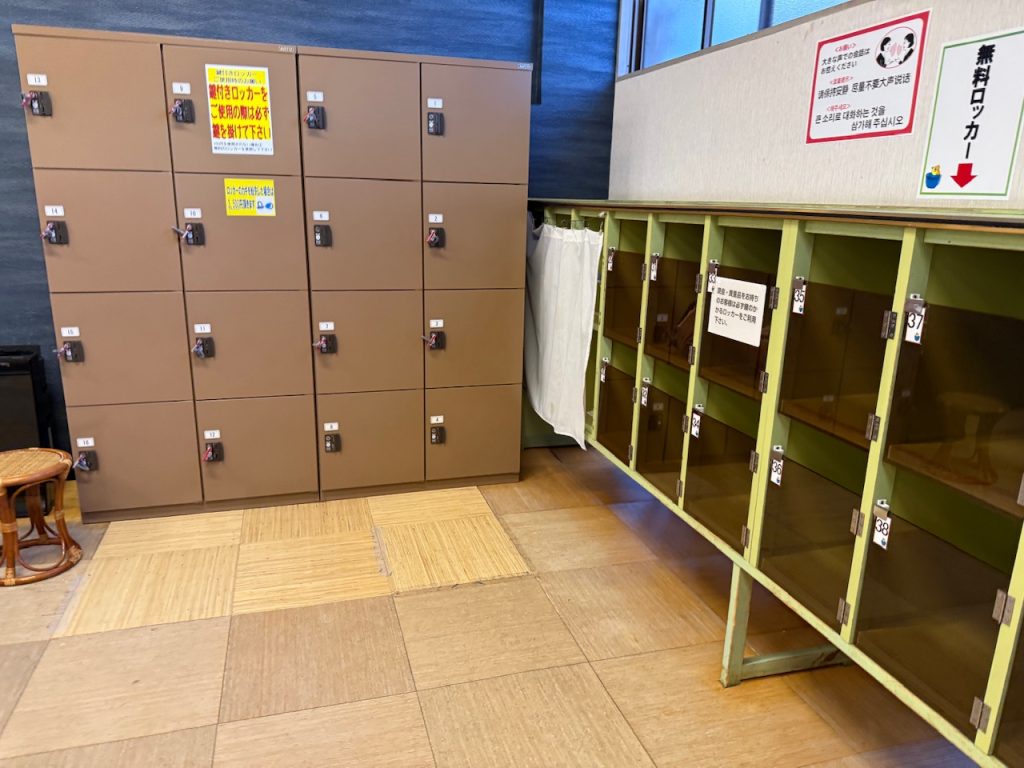 脱衣所は無料で使用できる棚に扉が設置されているものと、100円返却式の鍵付きロッカーがありました。