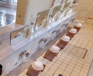 立って入る温泉として有名で浴槽の底は石で敷き詰められており、足の裏の玉砂利の感触が気持ちがよいです。