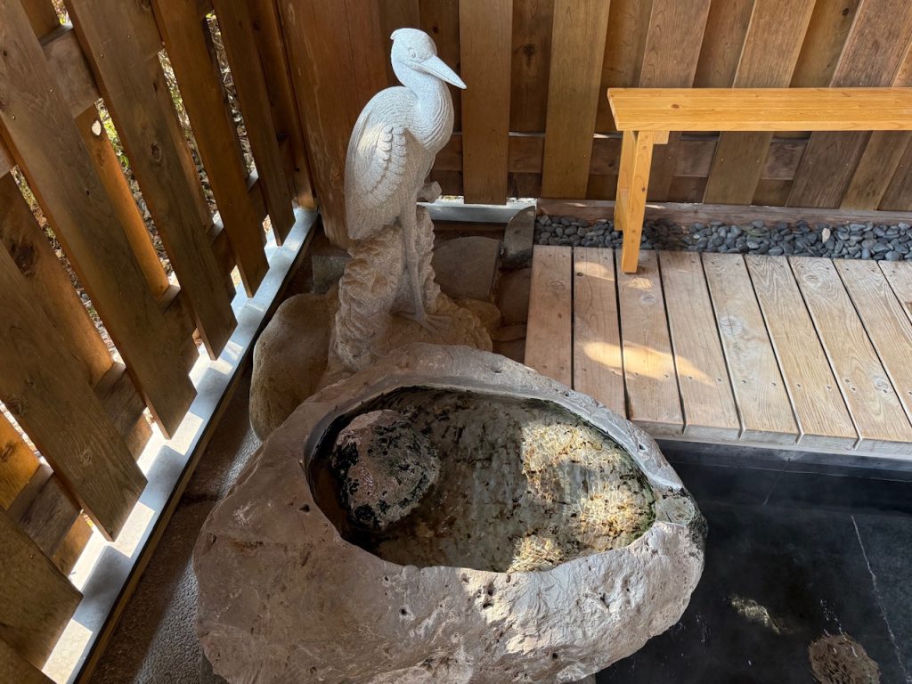 石造りの湯口の横には白鷺の石造が置かれていました。