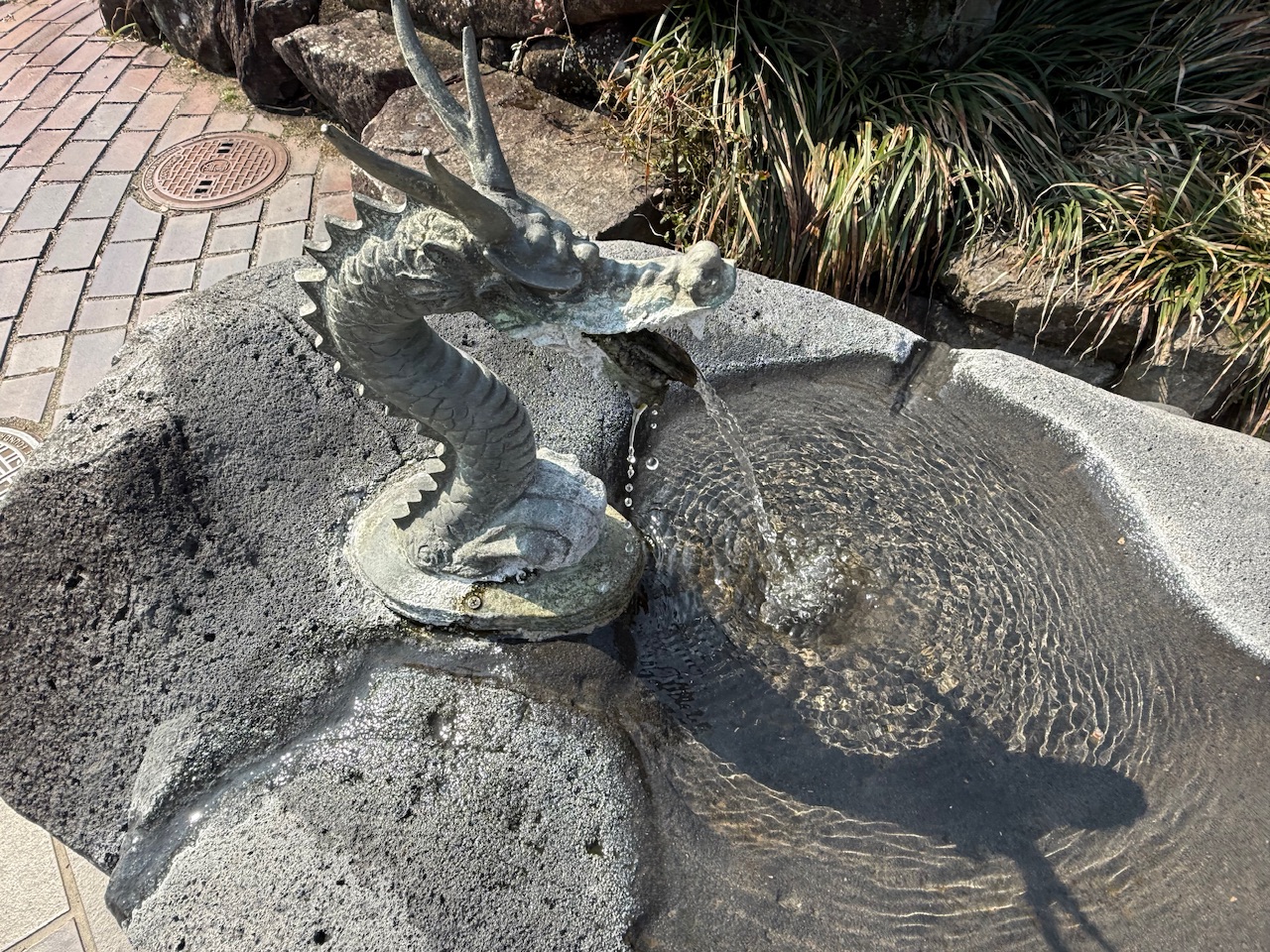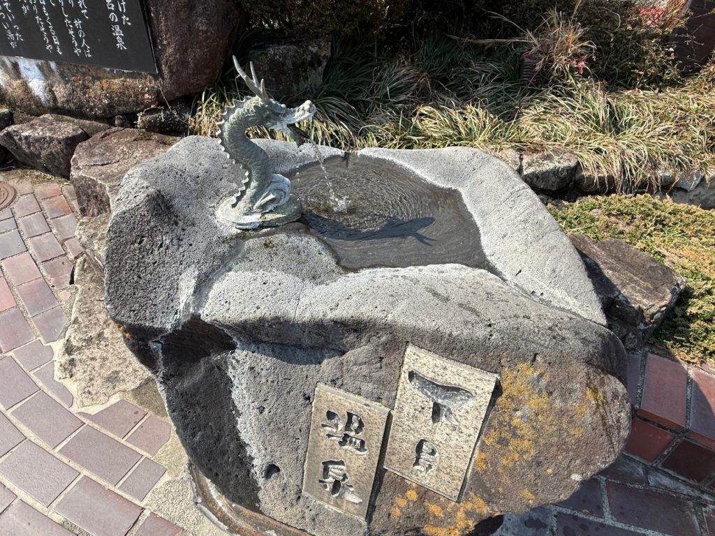 立派な竜の石像の口から温泉が噴き出していて暖かくてぬるっとしたお湯は気持ちがいいです。