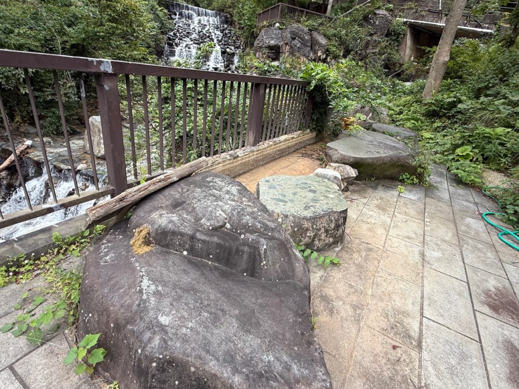 浴槽の周りに雑草が生えていて少し荒れ果てた感じになっていました。