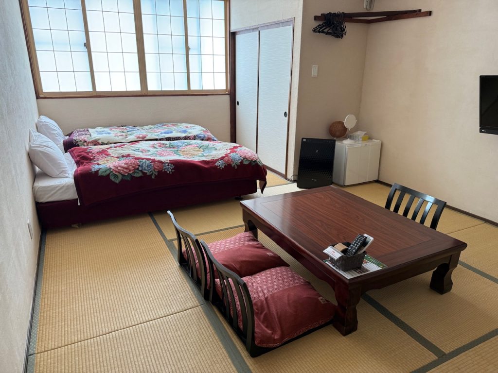 和風の畳の部屋にベッドが設置されているので、寝やすそうですね。