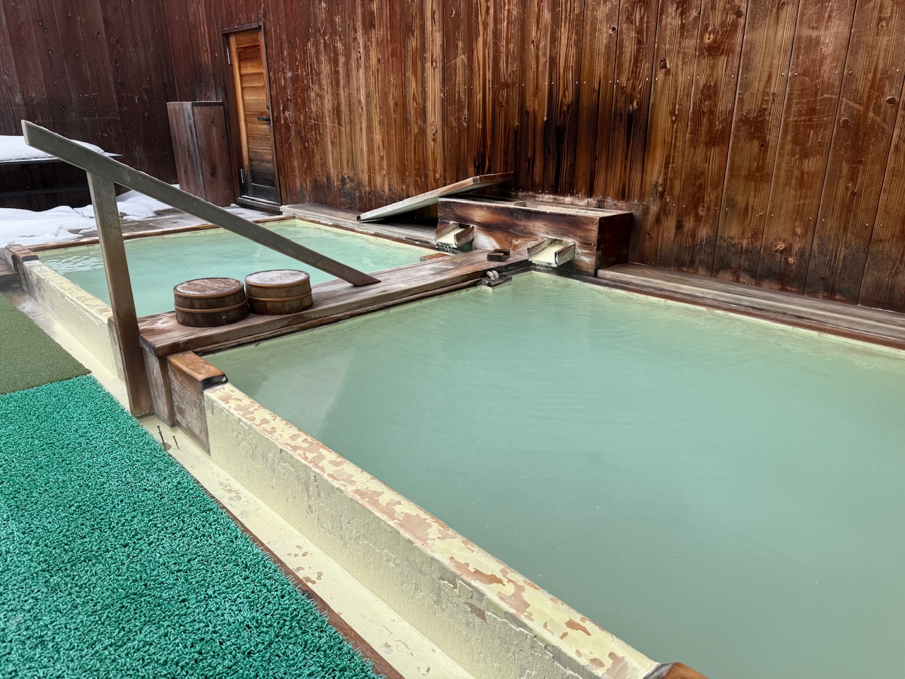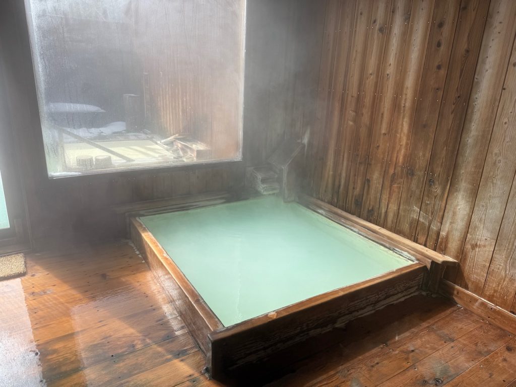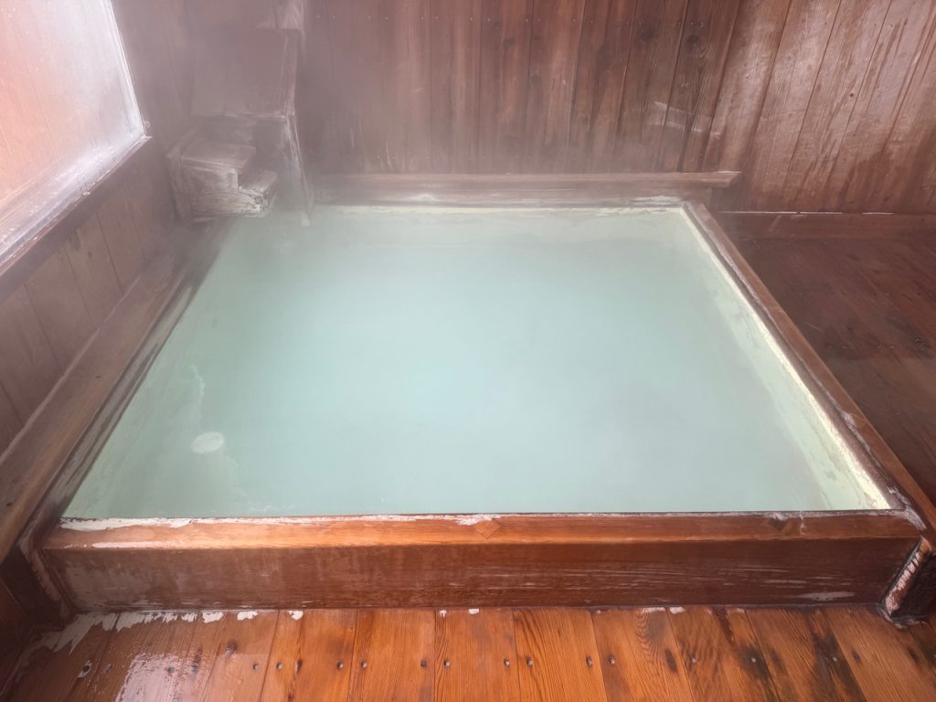 二人程が入れる大きさの浴槽となり、浴槽は大きくありませんが、ひとりで独占して入浴できましので白濁の湯を誰にも邪魔されずじっくりと味わうことができました。