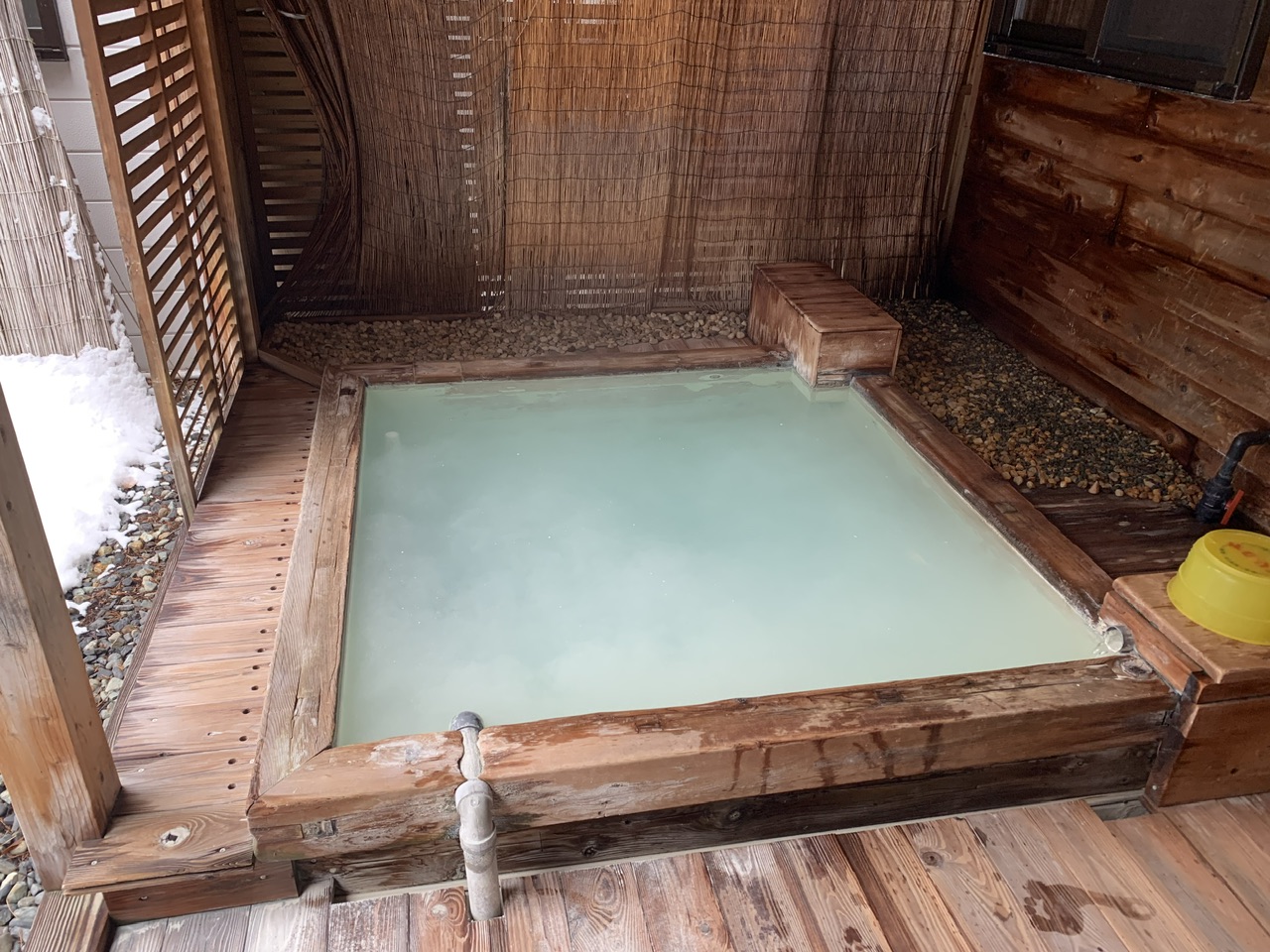 露天風呂は木材の浴槽が1つで2人用位の大きさです。