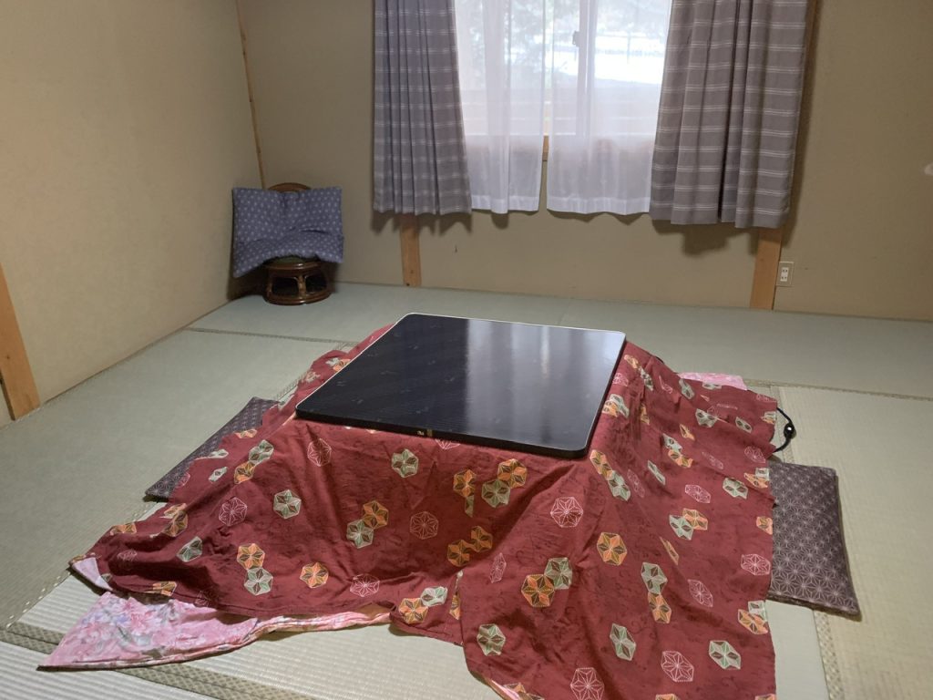 乗鞍高原の冬は寒いのでこたつでほっこりできてよいですね。