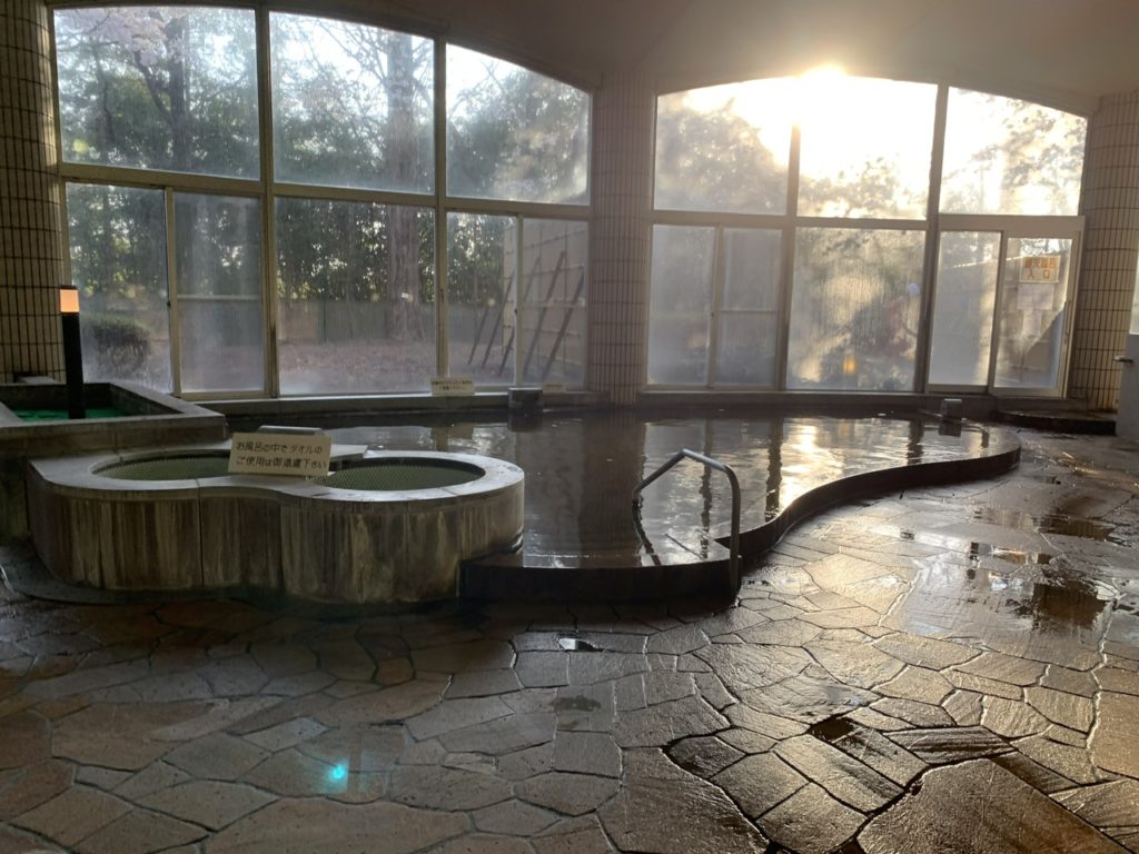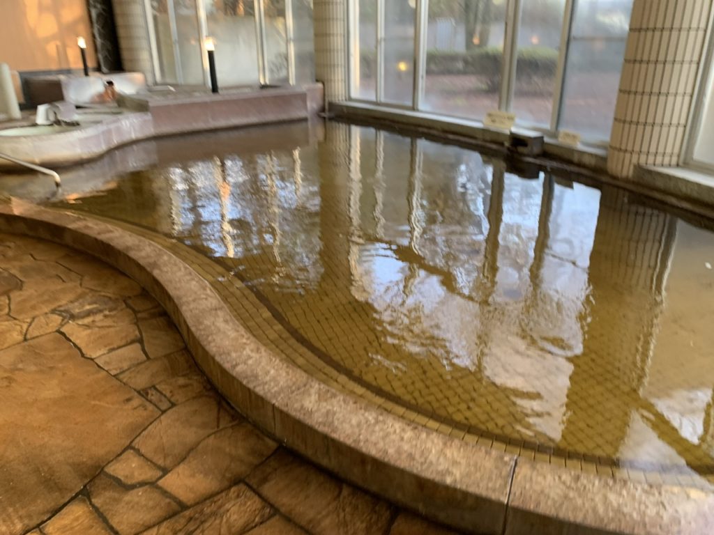 内風呂の大きな浴槽は源泉が掛け流されていてぬるっとしたお湯ですべすべします。