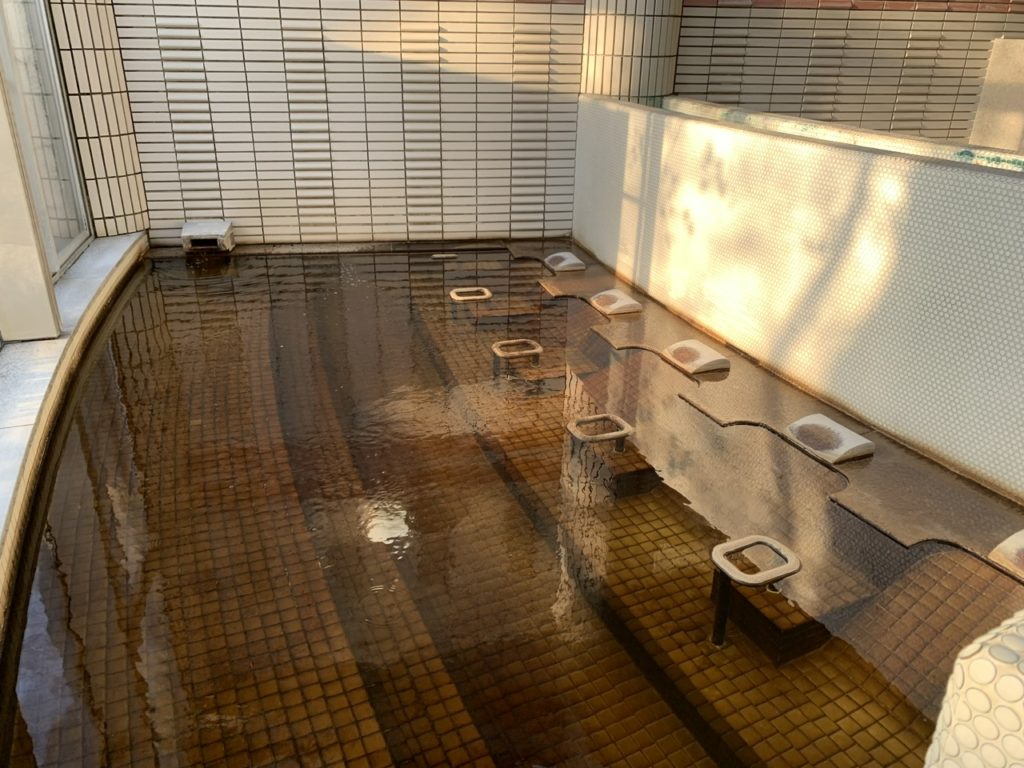 小さい浴槽は透明のお湯でした。