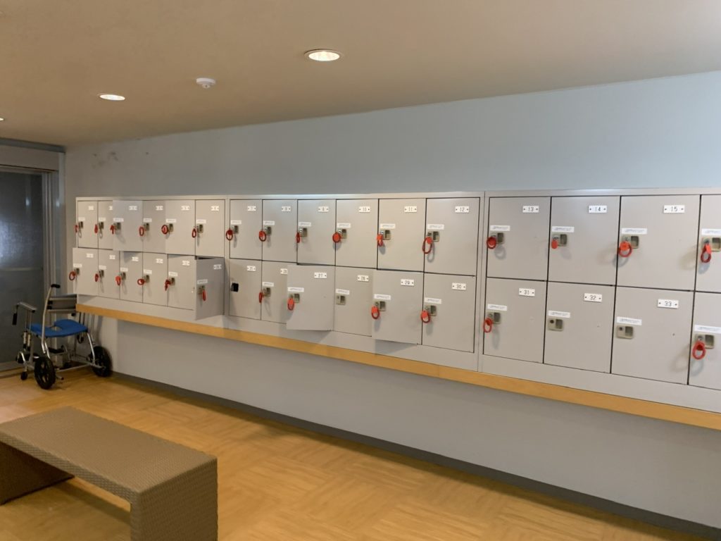 ロッカーは鍵付きですが、小さめなので二つ利用させて頂きました。