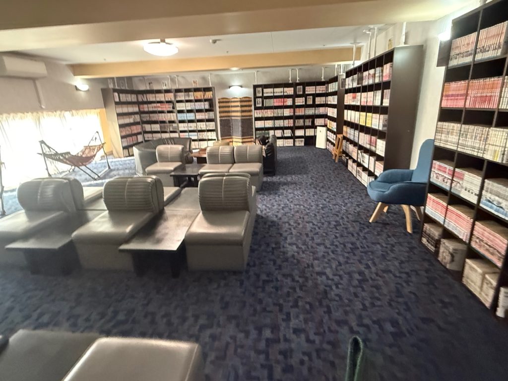 奥には漫画が部屋の壁に一面並べられている休憩スペースまがありました。